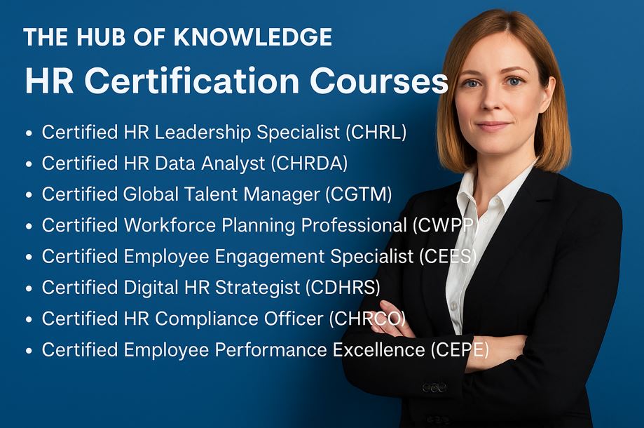 THE HUB OF KNOWLEDGE offers a comprehensive portfolio of Human Resource Certification Courses that empower professionals to lead with confidence, apply modern HR strategies, and make measurable business impact. Whether you’re starting your HR journey or advancing toward leadership, our certifications are designed to equip you with the essential tools, knowledge, and credibility needed for success.
