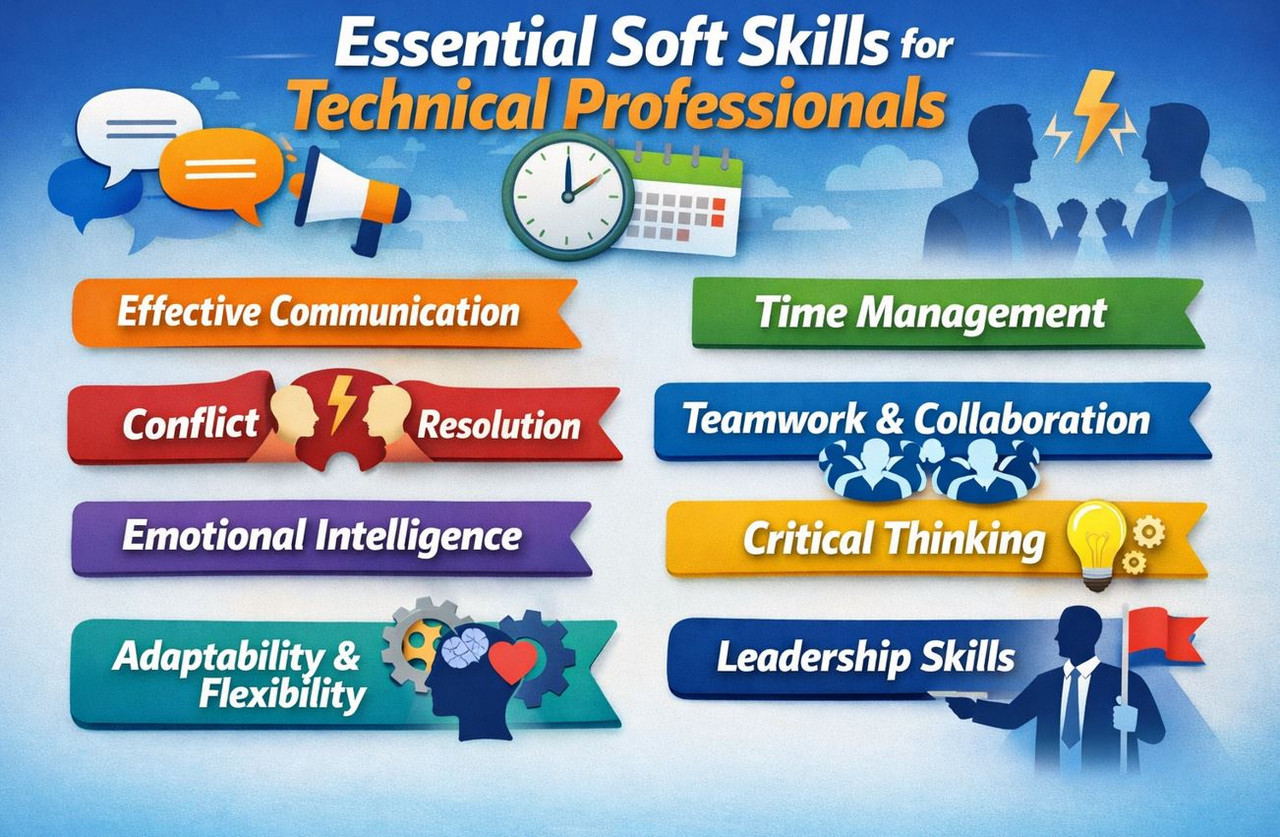 Soft skills bridge the gap between technical ability and professional growth. Here are the 8 most essential soft skills every technical professional must develop: